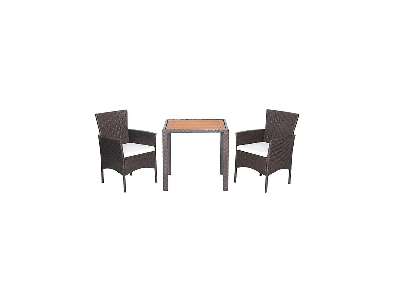 Shop Slickblue 3 Pieces Patio Wicker Furniture Set wih Acacia Wood Table Top and Chair Cushiones in Los Angeles, CA