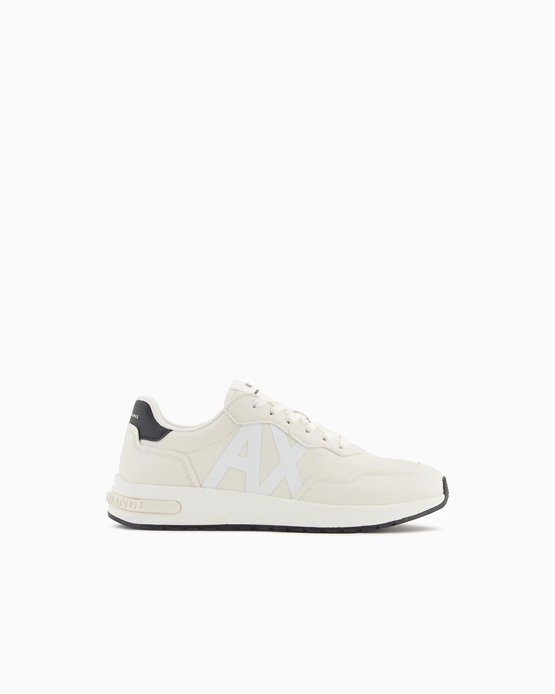 Sneakers crafted from a grained leather-look material, featuring a clean, contemporary design with a bold twist. The large contrasting logo on the side adds a distinctive touch, lending a modern and recognizable aesthetic. The lightweight, comfortable sole ensures an ideal fit for everyday wear, combining style and practicality.