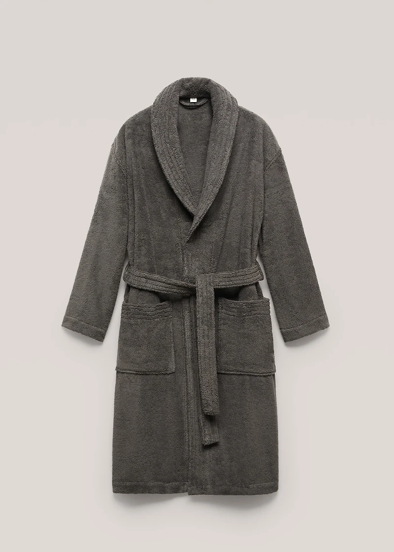 100% Cotton. Weight: 450 gsm. Crafted from the highest quality cotton, this bathrobe stands out for its exceptional softness and absorbency, providing a cozy and enveloping sensation after every bath or shower. Features an adjustable belt that allows it to be cinched at the waist, offering a personalized silhouette and a secure fit. Superior quality. Pleasant texture. Two patch pockets on the front. Highly absorbent and breathable for quick drying. Available in various colors. Pairs with more products from the collection. Online Exclusive. Wide range of colors. 421 GSM. It ensures good absorption and quality. Tie at hip level.