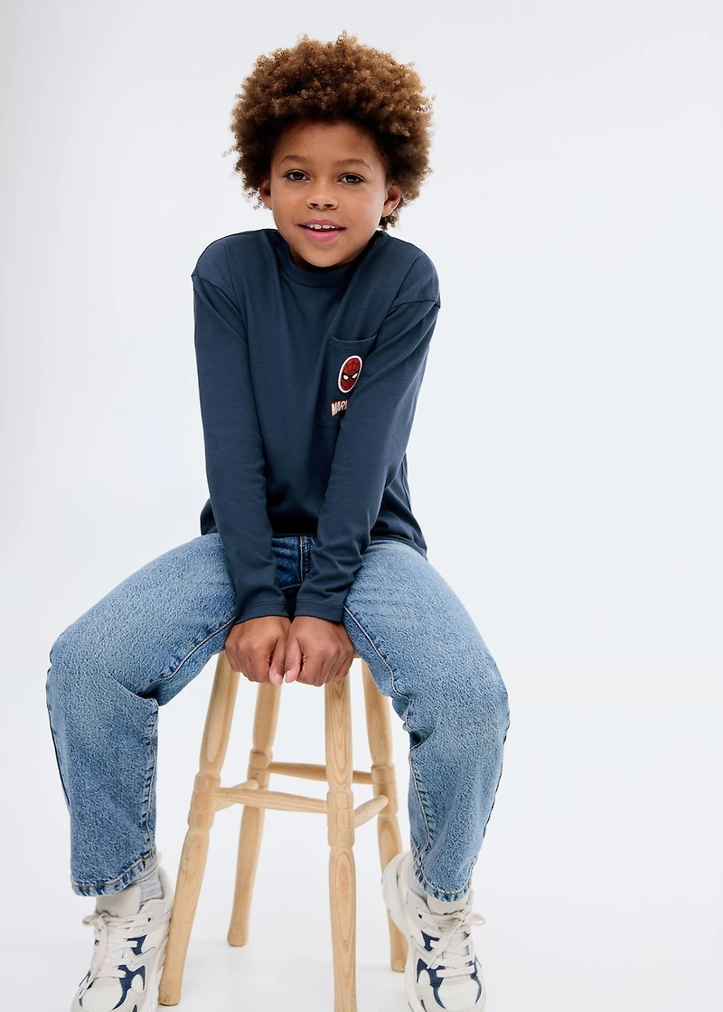 100% cotton fabric. Long design. Straight design. Round neckline. Long sleeves. Spiderman pattern. Embroidered draw. Licenses.