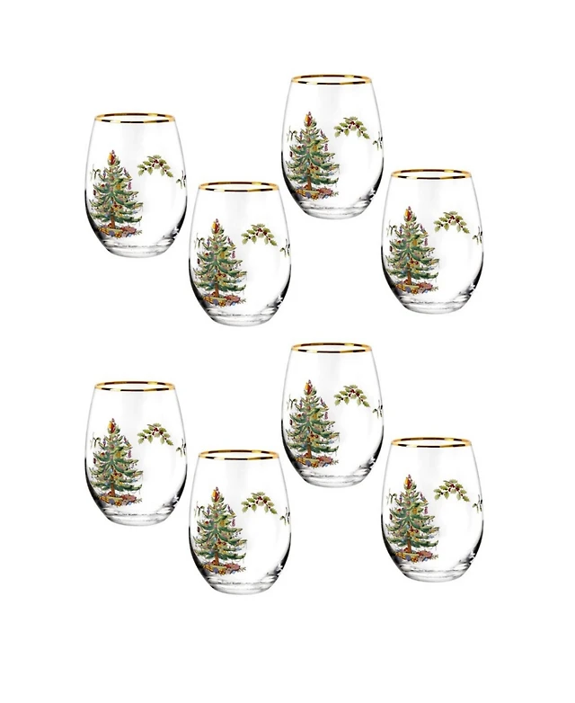 Spode Christmas Tree Stemless Wine Glasses, Set of 8