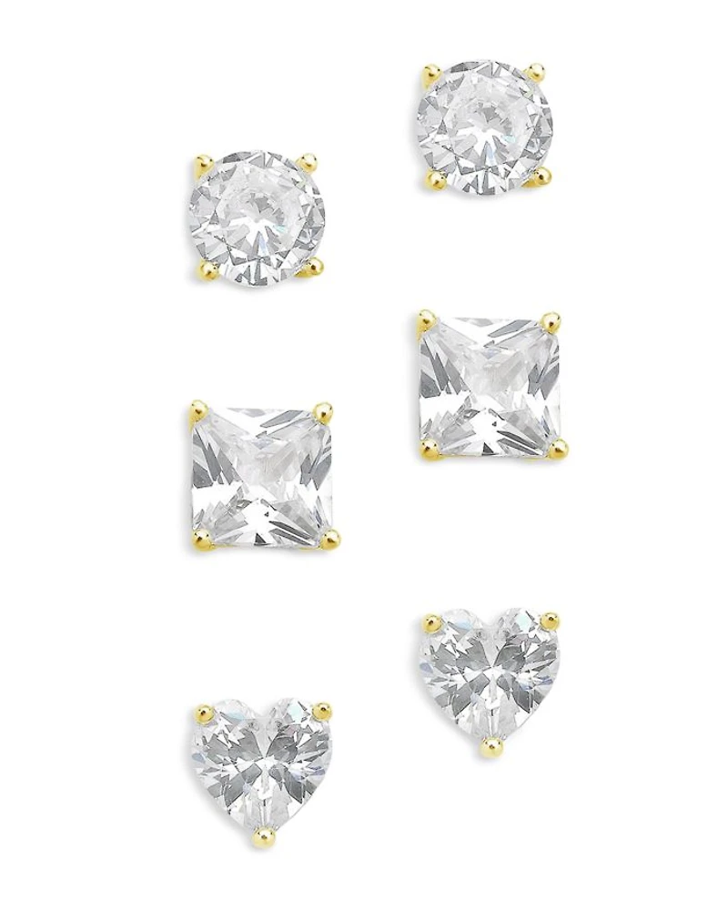 - Includes one pair each of round, square and heart-shaped stud earrings