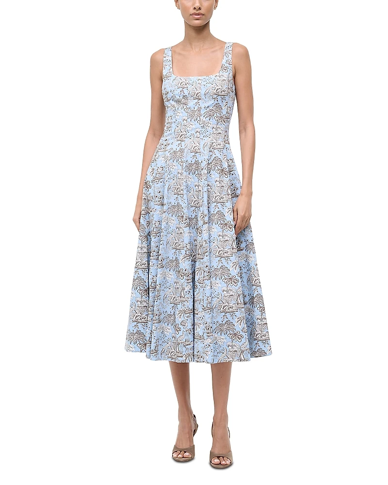 Staud Wells Midi Dress.Color:Sky Toile.Size:0.Material:98% cotton/2% spandex; lining: 100% cotton.Dresses.