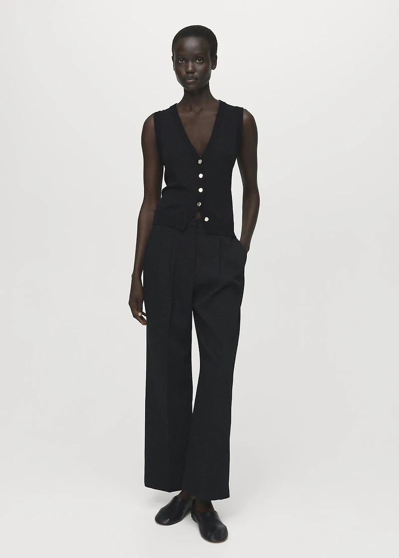 Long design. Straight design. High-rise. Belt loops. Dart detail. Two side pockets. Concealed button, hook and zip fastening. Inner lining. Total look.