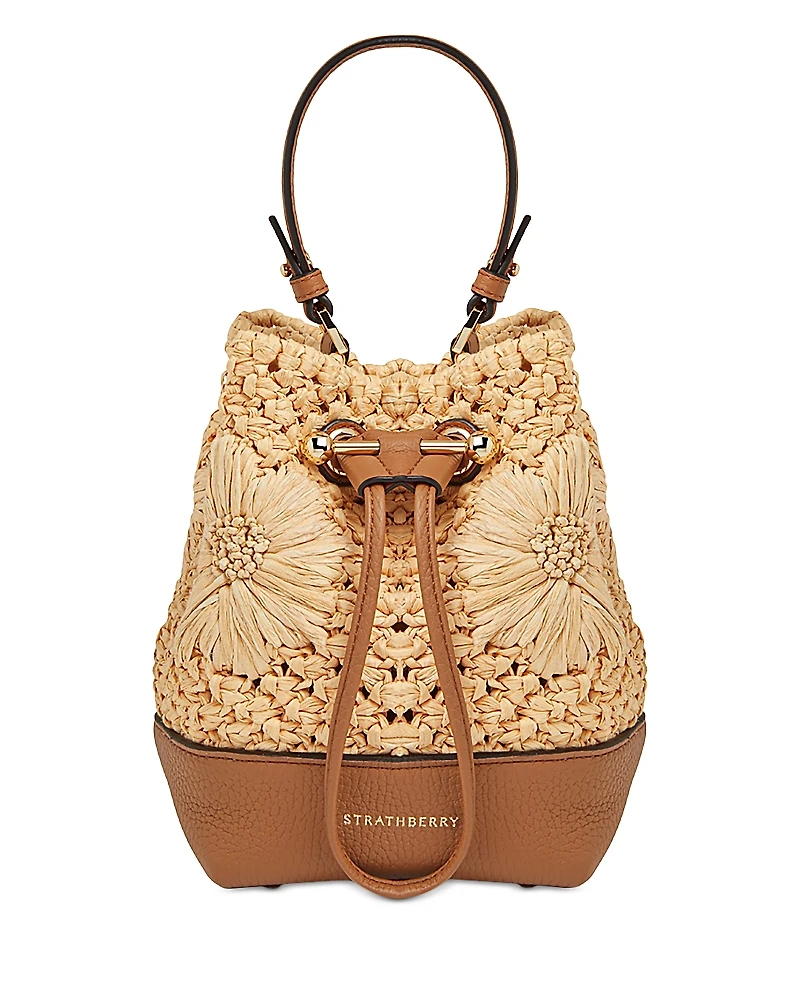 A fresh interpretation of the much-loved Osette features the natural texture of raffia in a delicate floral design, seamlessly married with Strathberry's calf leather to maintain a soft structure. This versatile silhouette can be carried in hand by the top handle, or styled as a crossbody bag with the detachable leather strap-for elegant ease in your day to day.