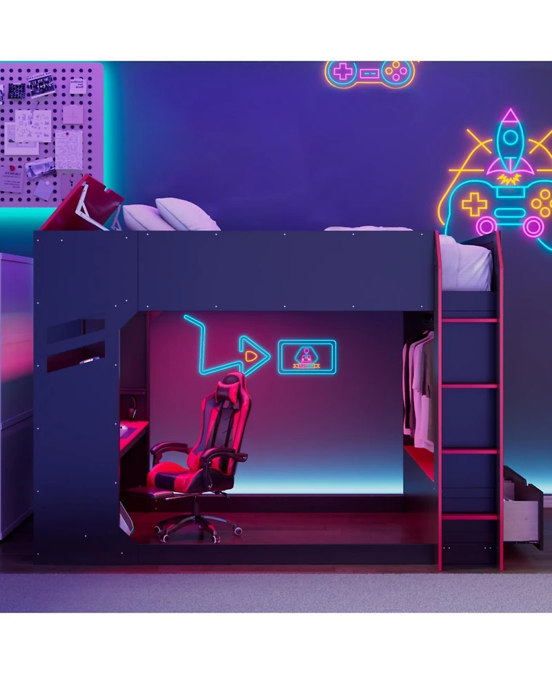 Shop Streamdale Furniture Full Size Wood Loft Bed with Adjustable Desk, Drawers, Storage, Rgb Lights, Blue in Los Angeles, CA