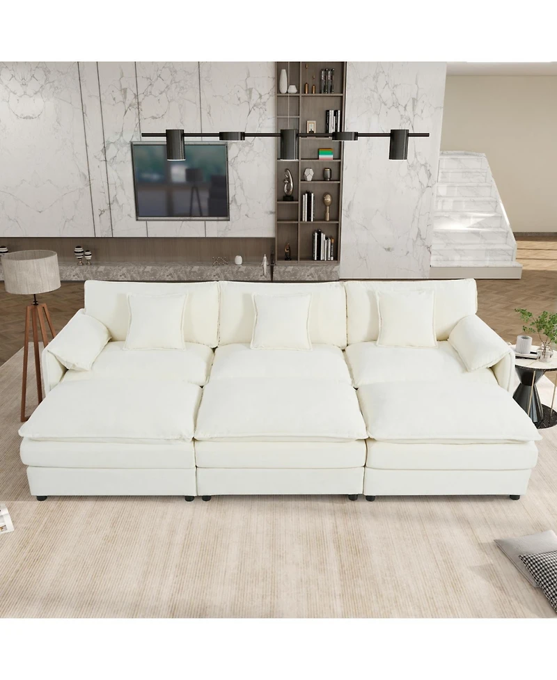 Shop Streamdale Furniture Streamdale Oversized Cloud Sectional Sofa Sleeper w/ Ottomans & Pillows - Beige in Los Angeles, CA
