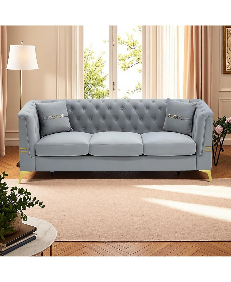 Streamdale Furniture Tufted Velvet Sofa, 82" 3-Seater Couch, Gold Legs