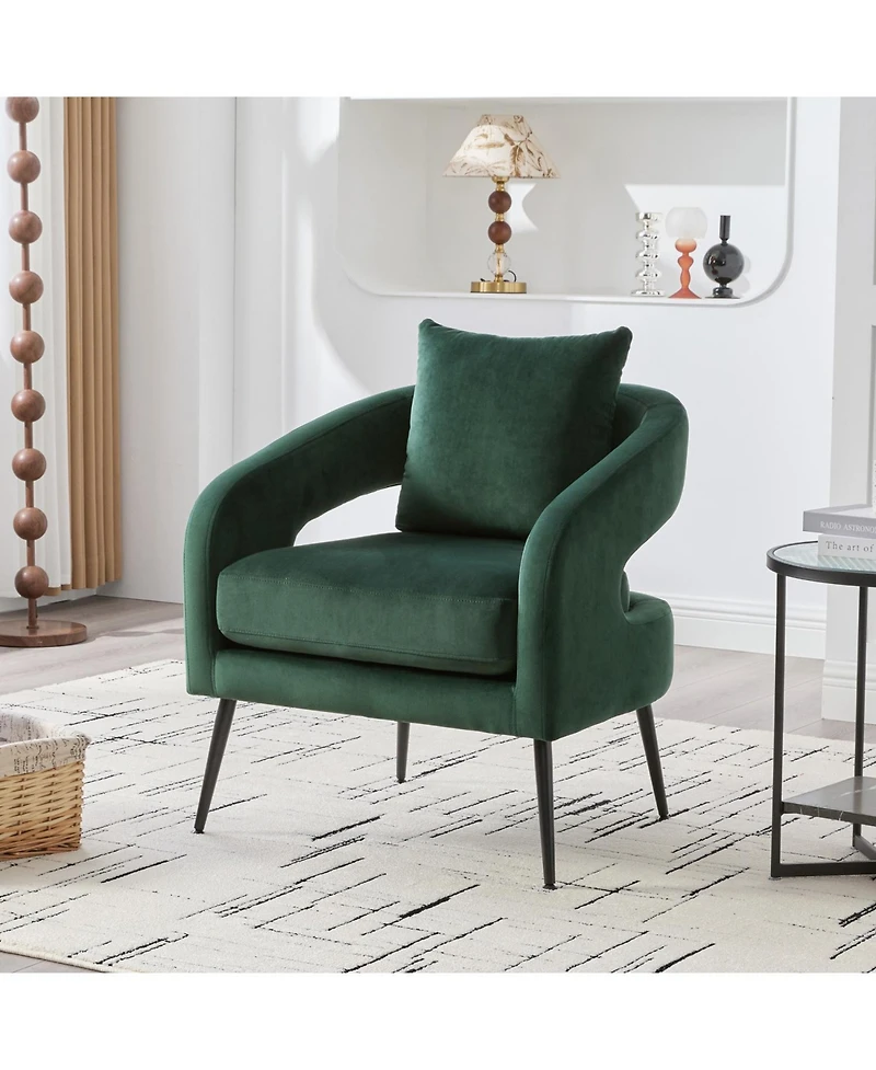 Streamdale Furniture Velvet Open Back Accent Chair with Metal Legs, Green