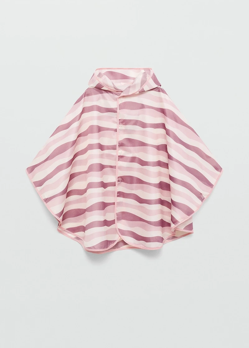 Waterproof fabric. Layer design. With hood. Front button closure.