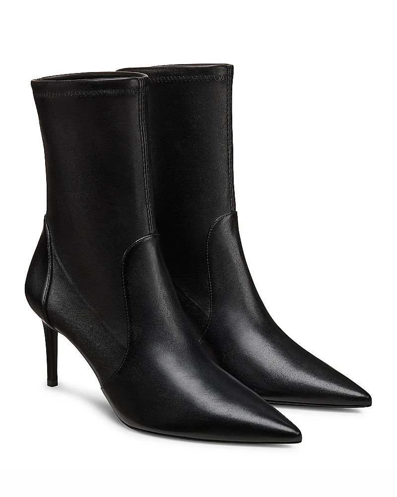 Stuart Weitzman Women's Stuart Power 75 Bootie.Color:Black.Size:10.Material:Leather upper, leather/fabric lining, leather sole.