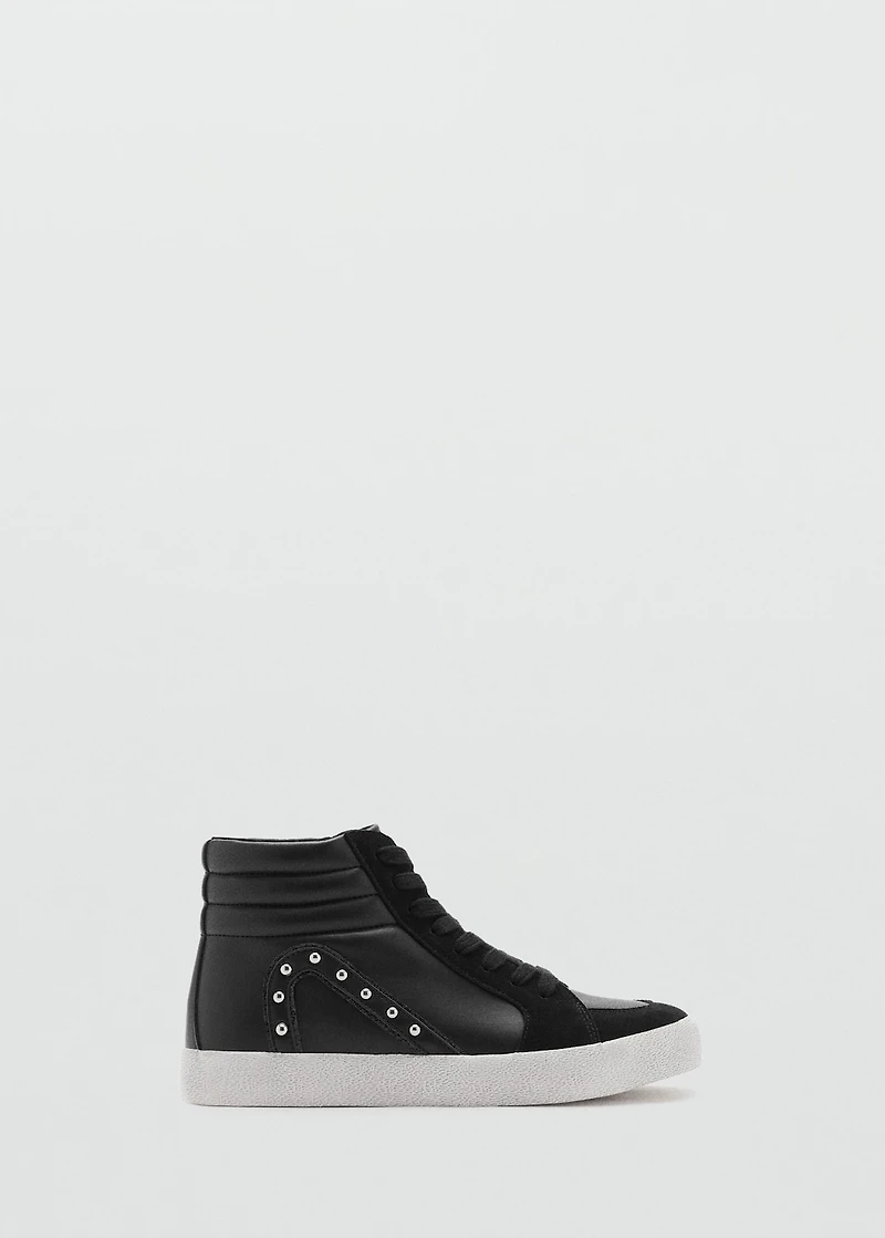Slightly-buttoned design. Round toe. Lace-up closure. Studded detail.