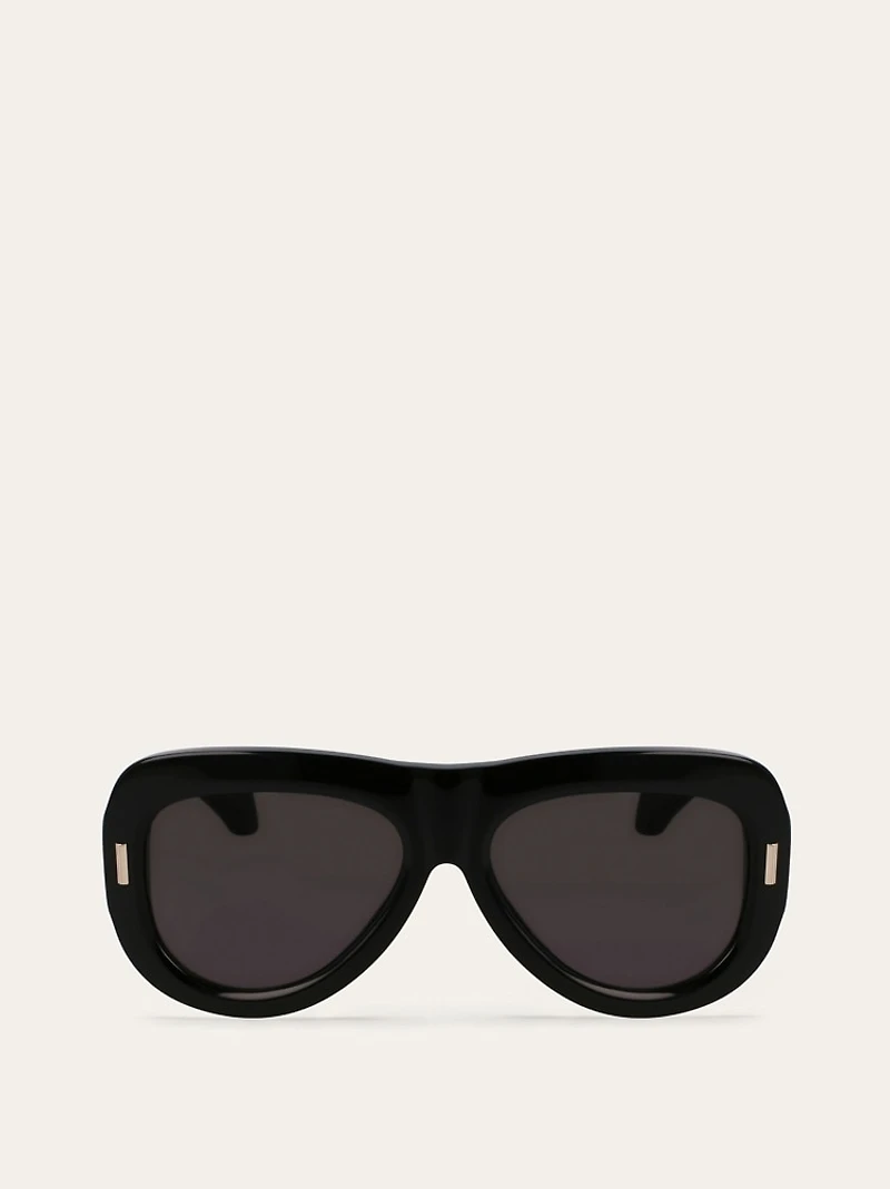 These bold oversized aviator sunglasses are meticulously crafted from Eastman Acetate Renew™, a blend of biobased plastics made from sustainably sourced wood pulp and materials recycled from industrial processes. The temples feature 7-joint hinges and metal wire visible in their core.The lenses are also made from eco-friendly materials.