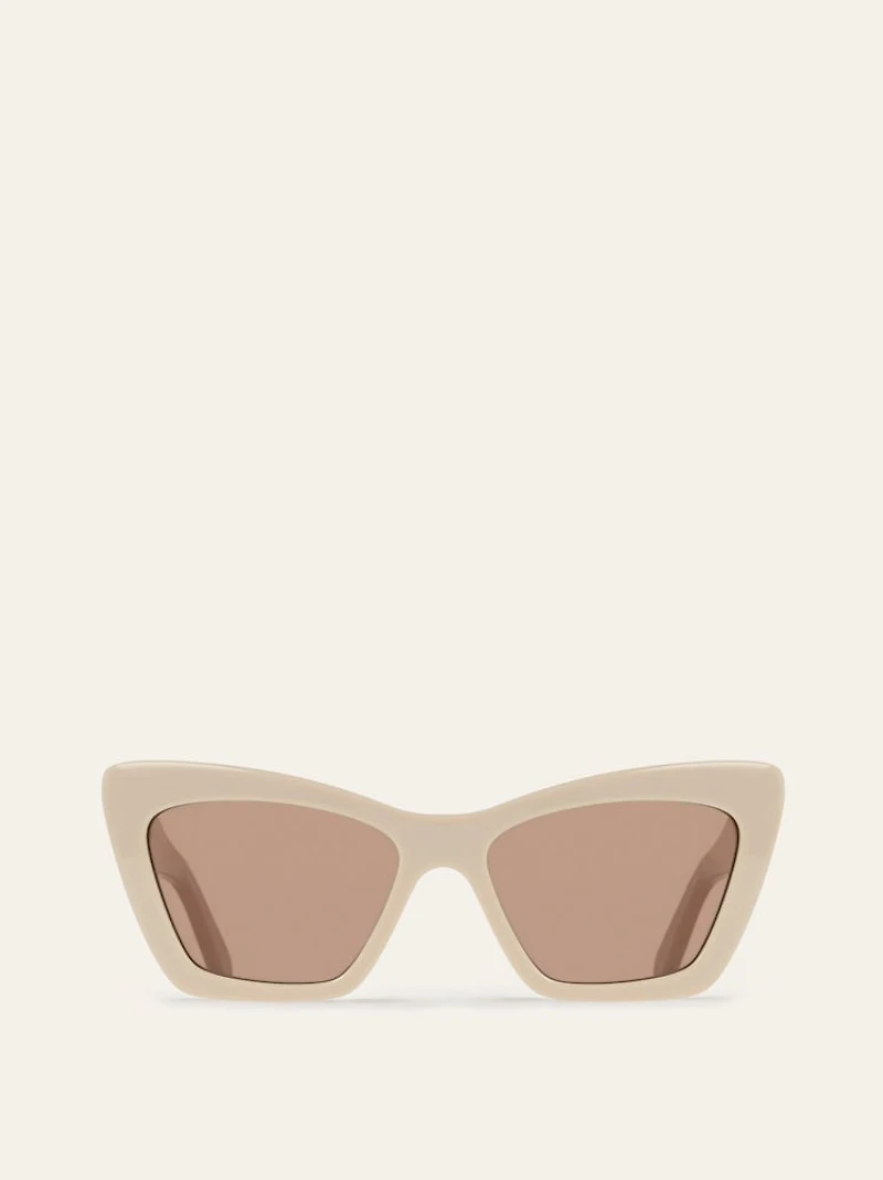 Women’s cat-eye sunglasses with a bulky acetate frame and geometrical temples.