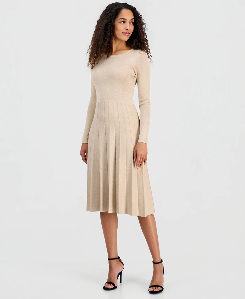 Shop T Tahari Women's Metallic Long-Sleeve Fit & Flare Dress in Los Angeles, CA