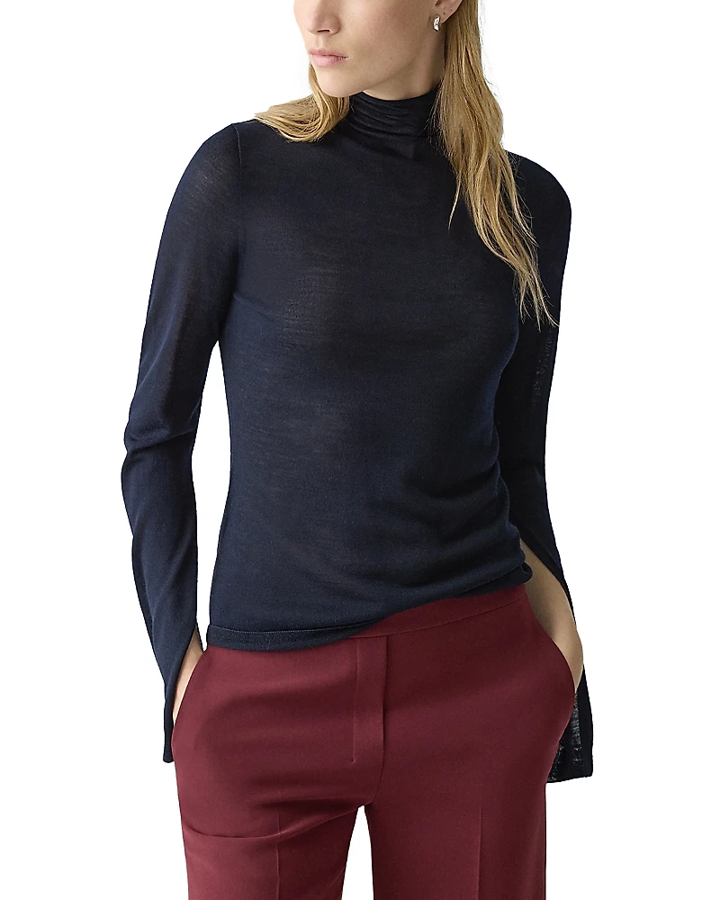 Theory High Neck Slit Sleeve Tee.Color:Dark Navy.Size:P.Material:50% wool/50% viscose.Tees.