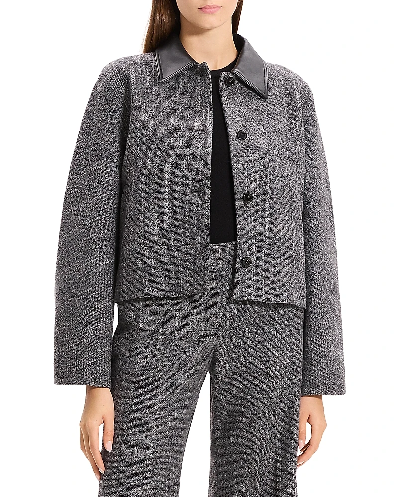 Theory Malfil Jacket.Color:Charcoal Multi.Size:P.Material:83% virgin wool/17% polyamide; lining: 100% polyester; collar: leather.Jackets.