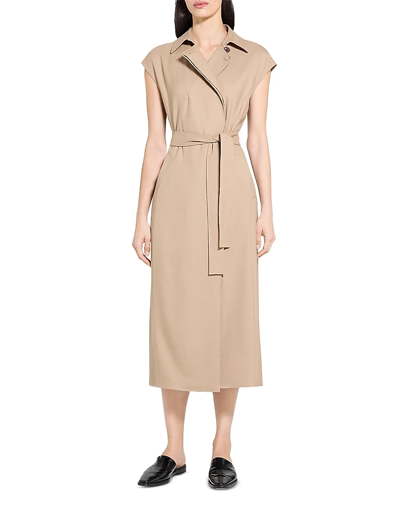 Theory Trench Maxi Dress.Color:New Camel.Size:P.Material:40% wool/29% polyester/28% viscose/3% spandex.Dresses.
