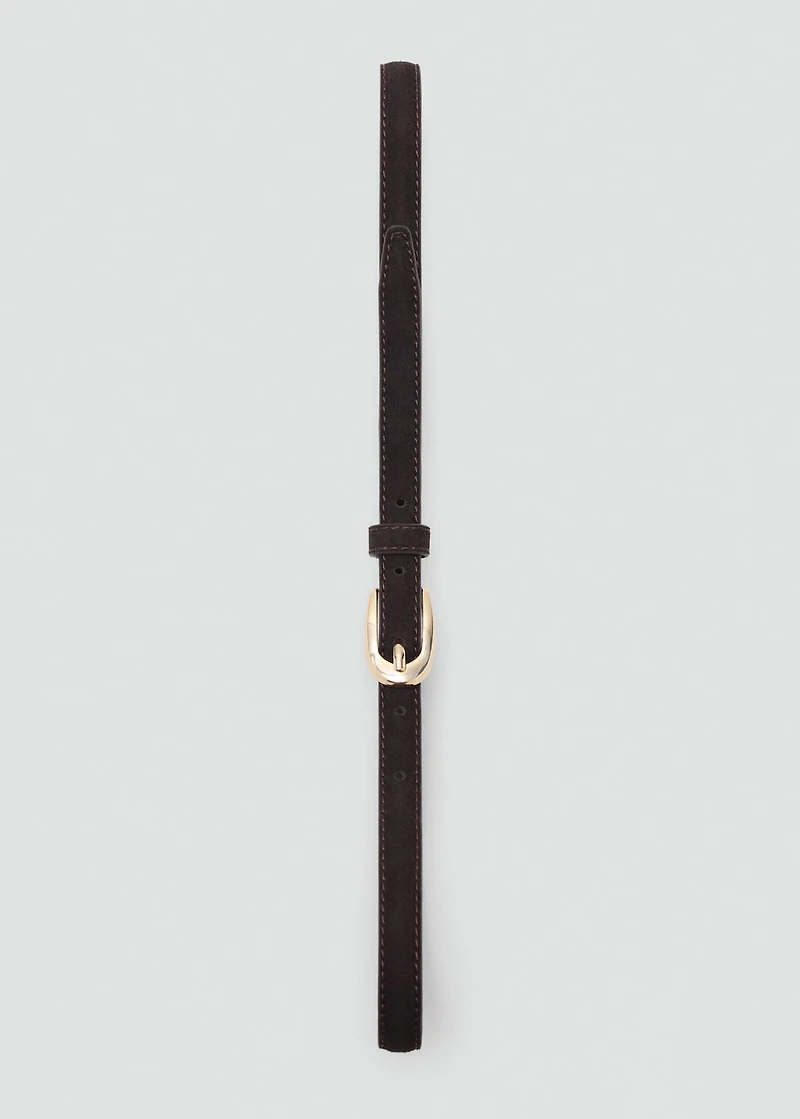 100% bovine leather. Suede. Slim design. Oval buckle. Buckle closure.