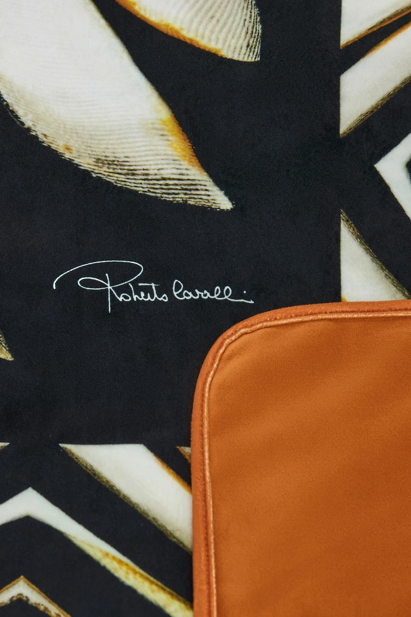 Ready to bring warmth and luxury to your home environments, this Roberto Cavalli throw is embellished with the signature Ray of Gold print, an unmistakable reminder of the power of the sun.