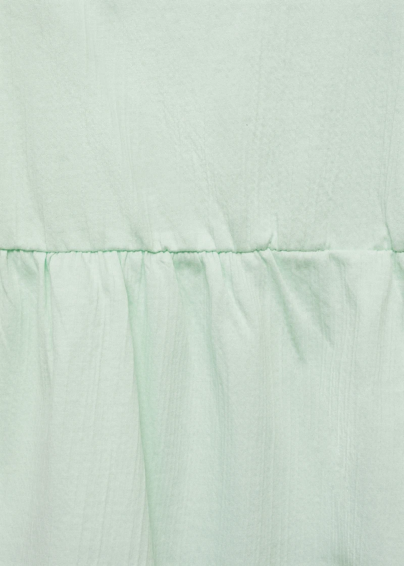 Cotton fabric. Stretch fabric. Textured fabric. Straight design. Straight neck. Thin straps. Swiss embroidered ruffle. Pleats detail. No closure. Promotional product.
