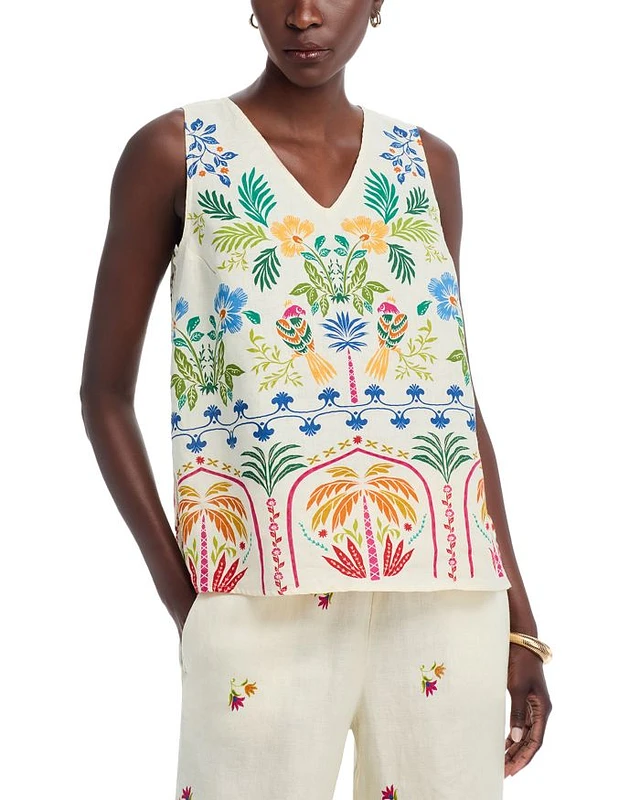 Ella Rafaella Plus Tropical Print Lace-Up Sleeveless Tank Top