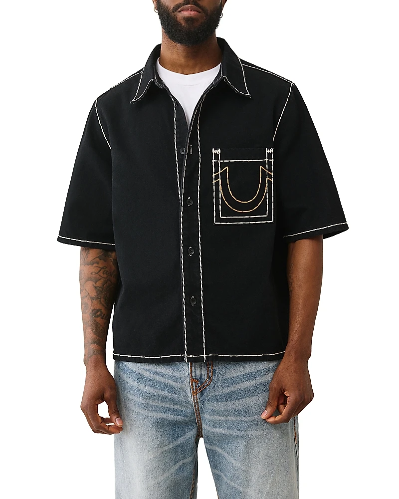 True Religion Super T Oversized Fit Denim Shirt.Color:Black.Size:S.Material:100% cotton.Shirts.