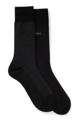 Two pairs of plain and patterned regular-length socks in a mercerized-cotton blend with branding by BOSS.