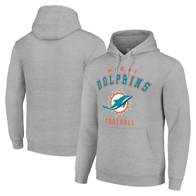 Unisex Starter Heather Gray Miami Dolphins Logo Pullover Hoodie