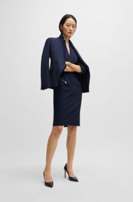 A form-fitting dress with smooth lining by BOSS Womenswear. This V-neck piece features cropped sleeves and zipped diagonal pockets.