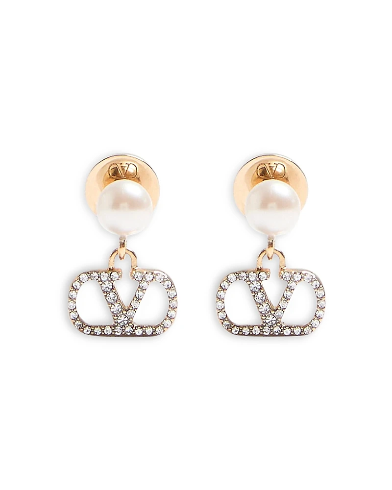 Shop Valentino Imitation Pearl & Pave VLogo Signature Drop Earrings in Los Angeles, CA