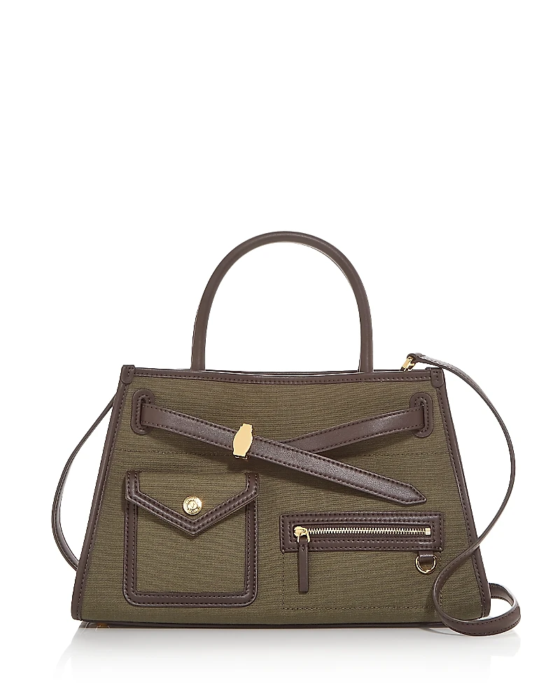 Veronica Beard Cargo Dash Top Handle Bag.Color:Cypress.Material:Polyester; trim: leather/polyurethane.Handbags & Wallets.