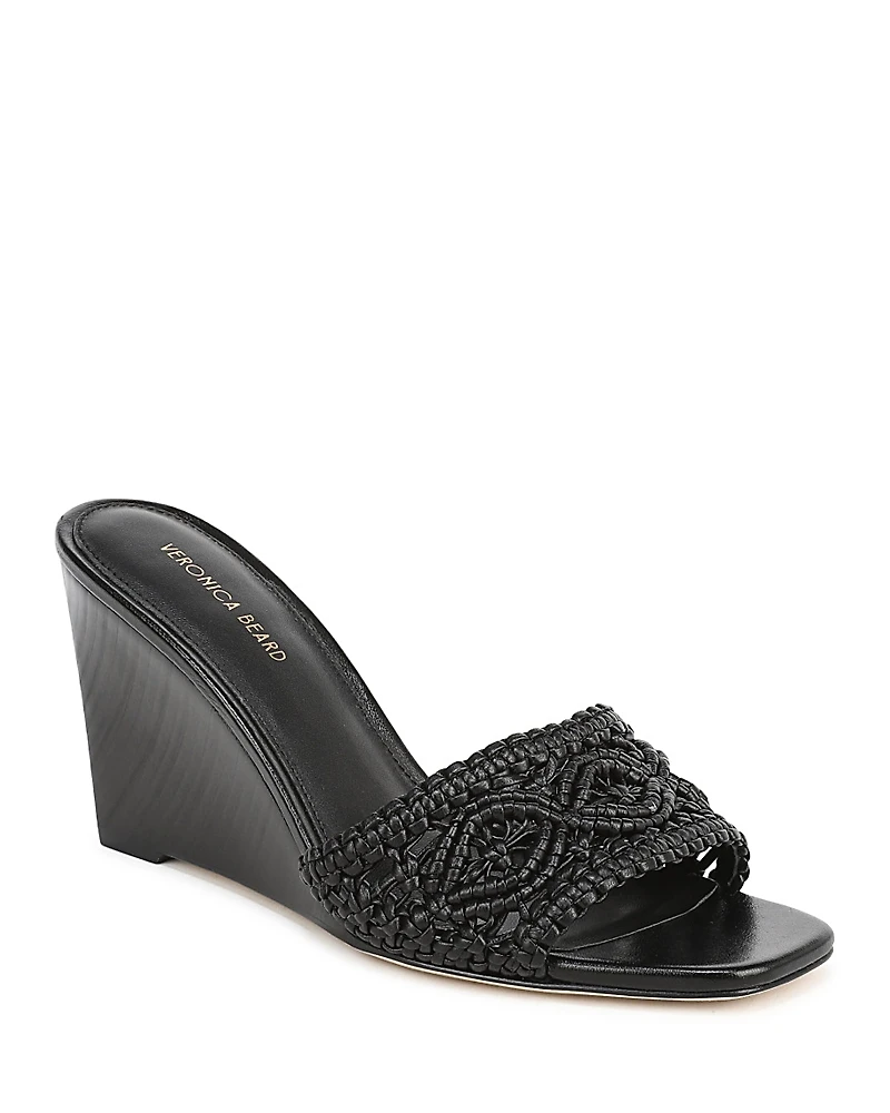 Veronica Beard Women's Ellen Woven Wedge Sandals.Color:Black.Size:5.Material:Leather upper, lining and sole.
