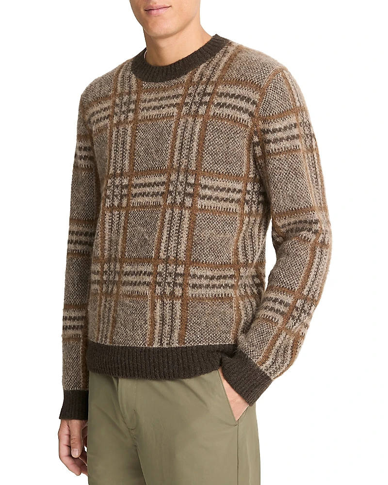 Shop Vince Brushed Glen Plaid Crewneck Sweater in Los Angeles, CA
