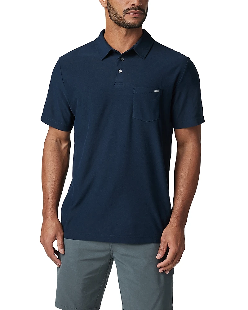 The Ace Polo is an easy adventure companion with a self-collar, three-button placket and a chest pocket. Made with a moisture-wicking performance pique, it's ideal for traveling, golfing, and chilling.