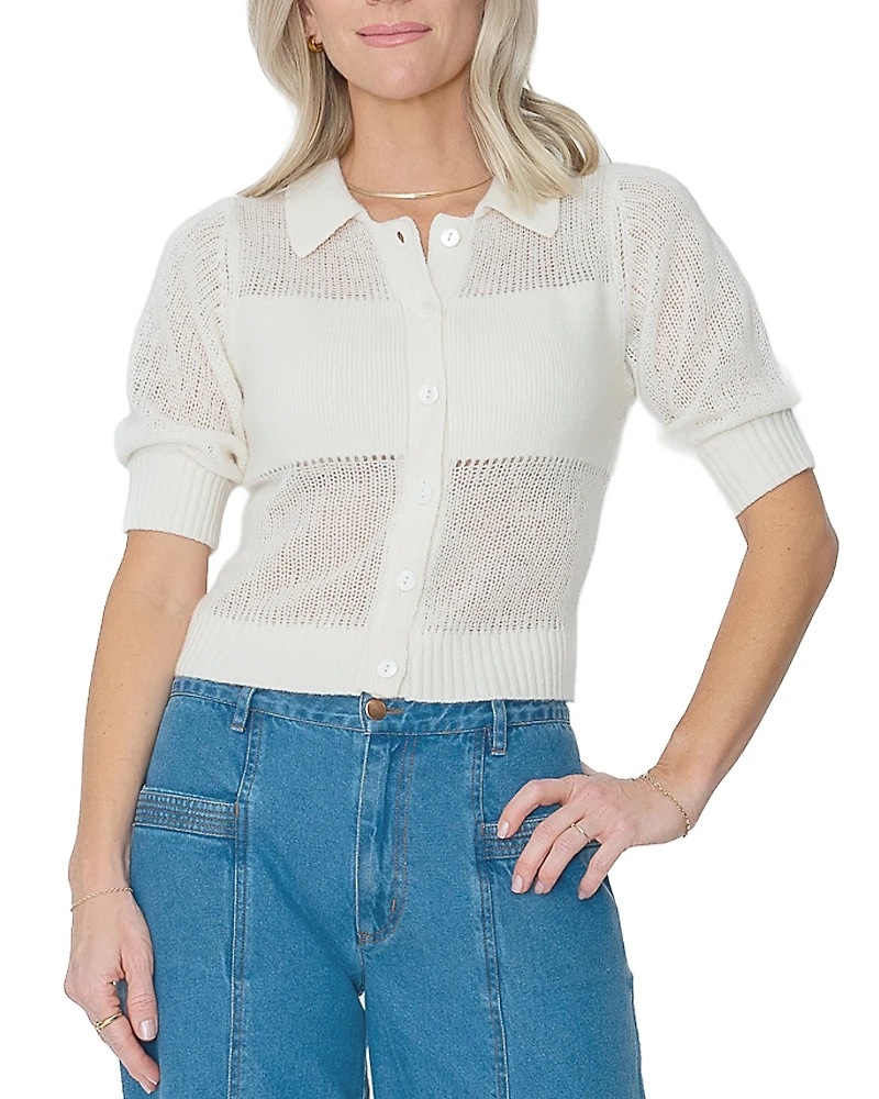 West Of Evelyn Cardigan.Color:Ivory.Size:M.Material:60% Cotton/ 30% Nylon/ 10% Wool.Sweaters.
