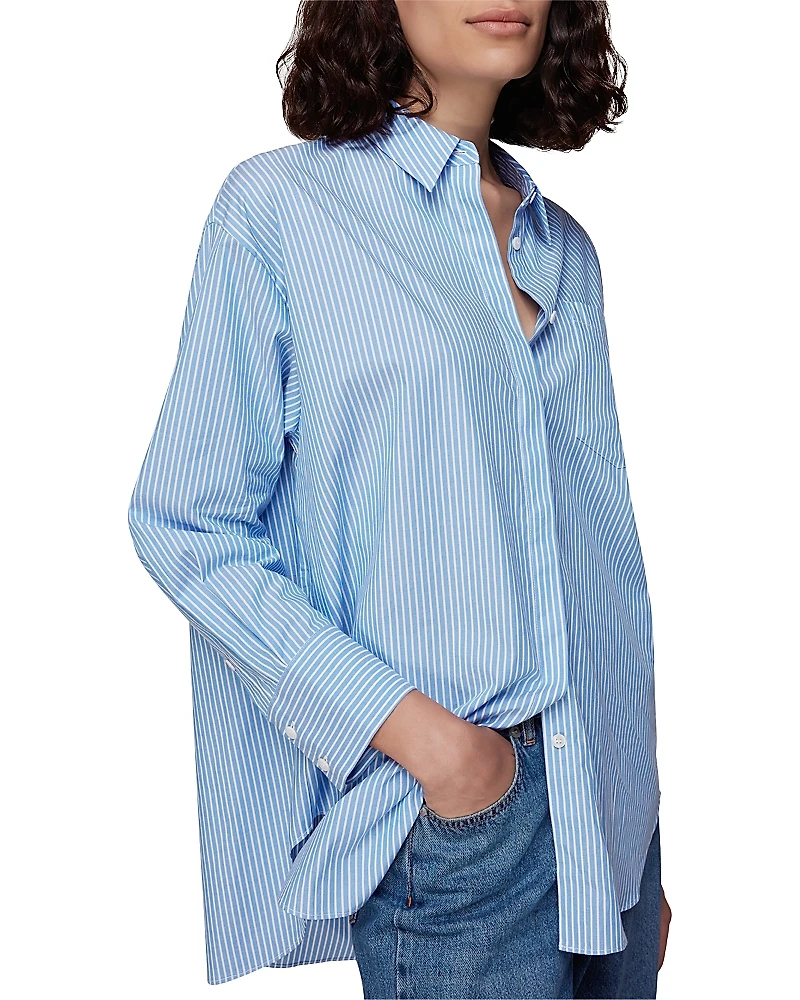 Whistles Striped Oversized Shirt.Color:Blue/Multi.Size:4 UK/0 US.Material:100% cotton.Tops.