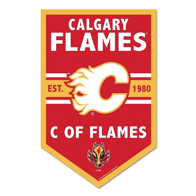 Show your Calgary Flames pride with this WinCraft 11" x 17" Chevron Wood Sign, a perfect addition to any fan cave, living room, or office. This high-quality sign is crafted from durable 1/4'' thick hardboard wood and features a matte finish laminate top for added durability. The vibrant, full-color printed graphics showcase the iconic team logo alongside the established date and famous slogan, making it a timeless piece full of energy for any fan. Ready to hang straight out of the box, this sign makes it easy to display your love for the game in style.