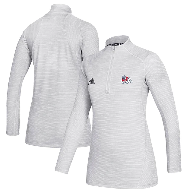 Women's adidas White Fresno State Bulldogs Game Mode Performance Quarter-Zip Pullover Top