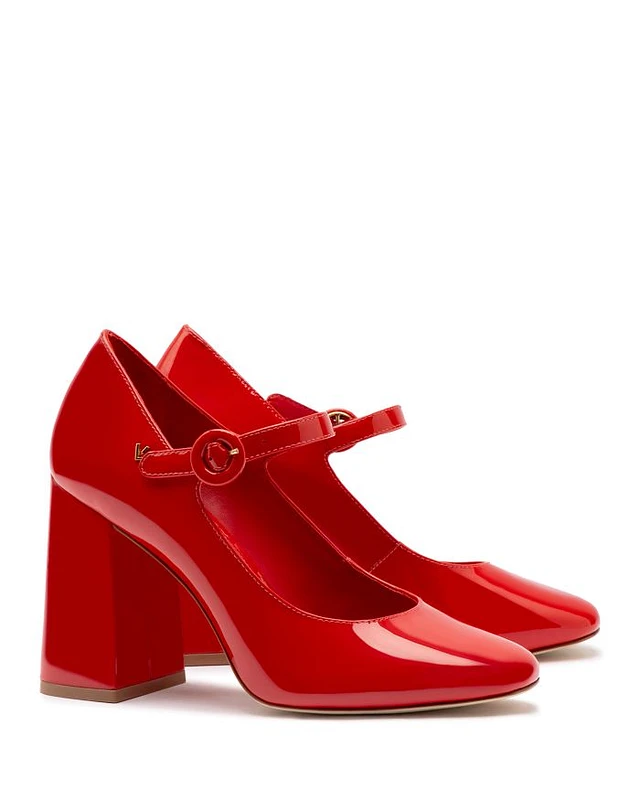 Larroude Women's Blair Buckled Ankle Strap Block Heel Pumps