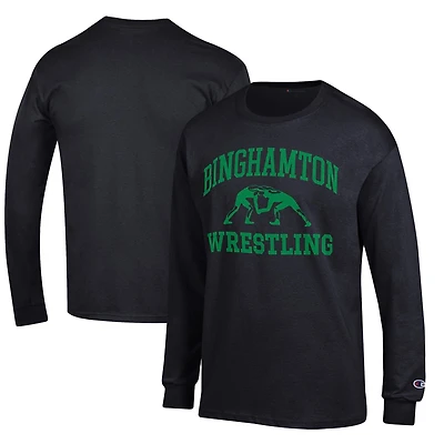 Men's Champion Black Binghamton Bearcats Wrestling Stacked Logo Long Sleeve T-Shirt