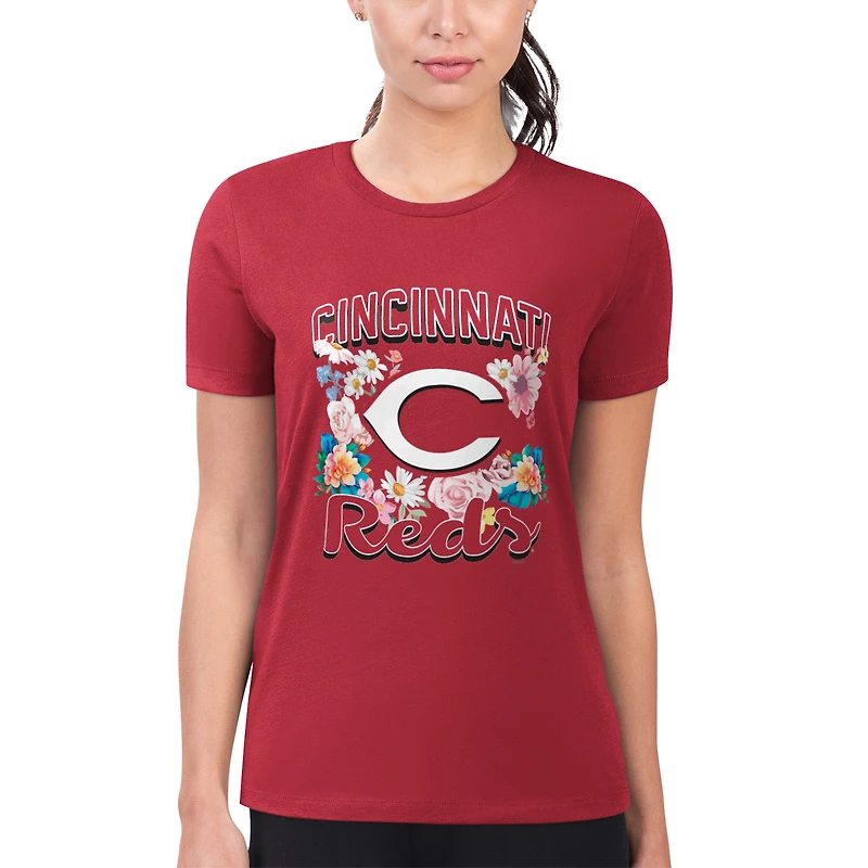 Support your Cincinnati Reds with a touch of floral flair in this G-III 4Her by Carl Banks Flowers Graphic Fitted T-Shirt. Made from a soft and breathable cotton blend, this tee provides lasting comfort for all-day wear. The eye-catching Cincinnati Reds graphics and flower design make it a stylish addition to any fan's wardrobe.