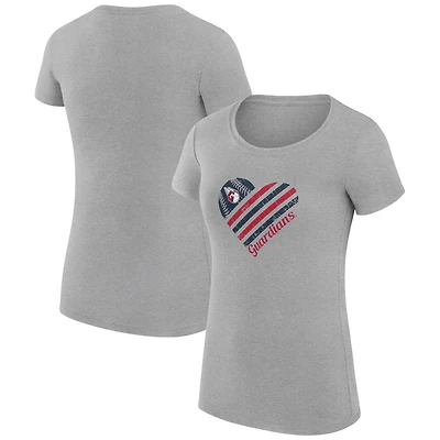Women's G-III 4Her by Carl Banks Heather Gray Cleveland Guardians Super-Slim Fit Lightweight Heart Graphic T-Shirt