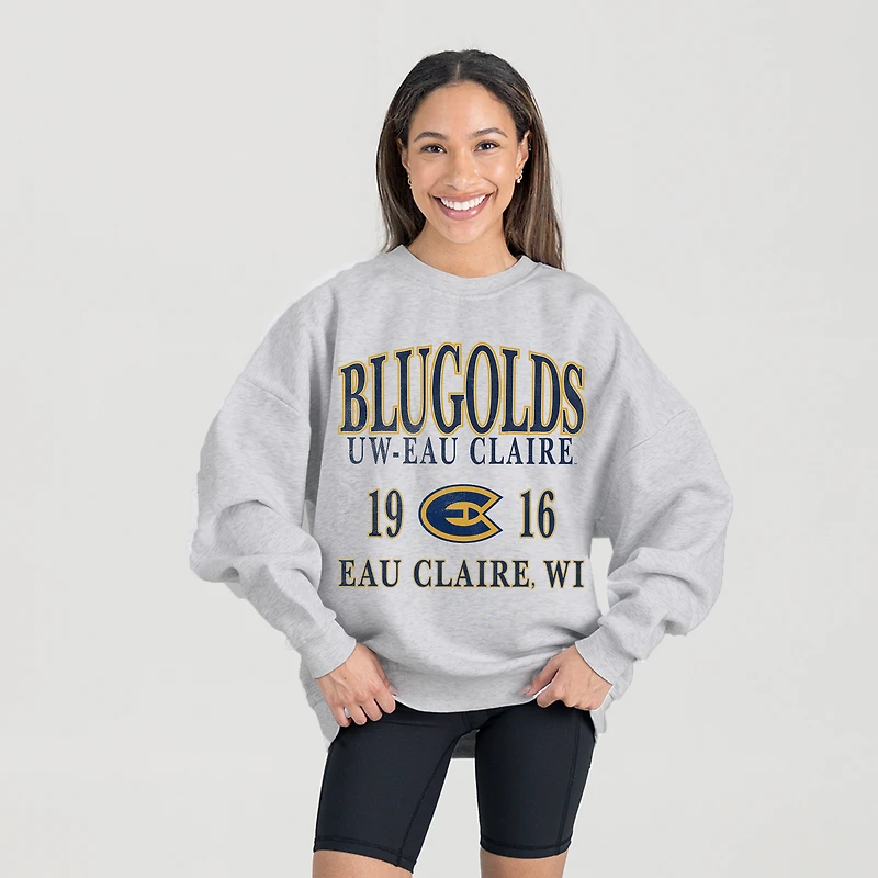 Women's Gameday Couture Ash Wisconsin Eau Claire Blugolds Premium Fleece Pullover Sweatshirt
