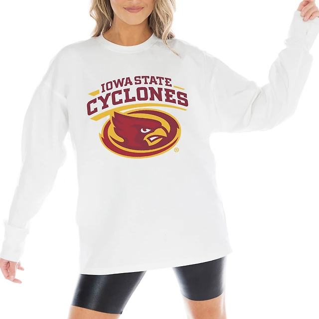 Women's Gameday Couture White Iowa State Cyclones Mind Games Oversized Long Sleeve T-Shirt