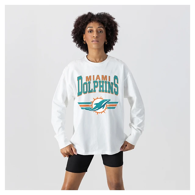 Women's Gameday Couture White Miami Dolphins Swift Strike Essential Oversized Long Sleeve T-Shirt