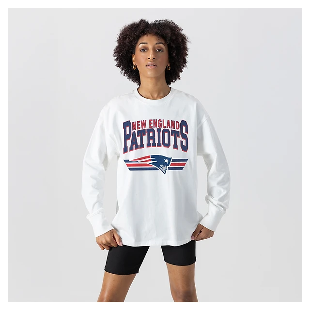 Women's Gameday Couture White New England Patriots Swift Strike Essential Oversized Long Sleeve T-Shirt