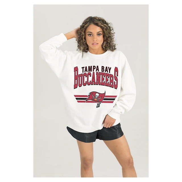 Women's Gameday Couture White Tampa Bay Buccaneers Swift Strike Premium Oversized Fleece Pullover Sweatshirt