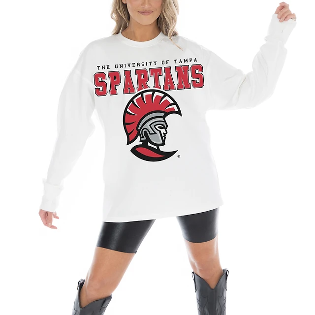 Women's Gameday Couture White Tampa Spartans Big Goals Oversized Long Sleeve T-Shirt