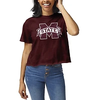 Women's League Collegiate Wear Maroon Mississippi State Bulldogs Clothesline Crop T-Shirt